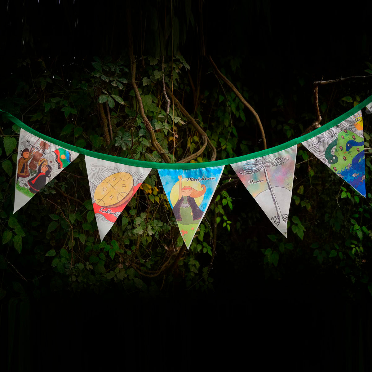 Para decorar todos tus espacios, incluye 5 ilustraciones inspiradas en la cosmovisión del Pueblo Mapuche