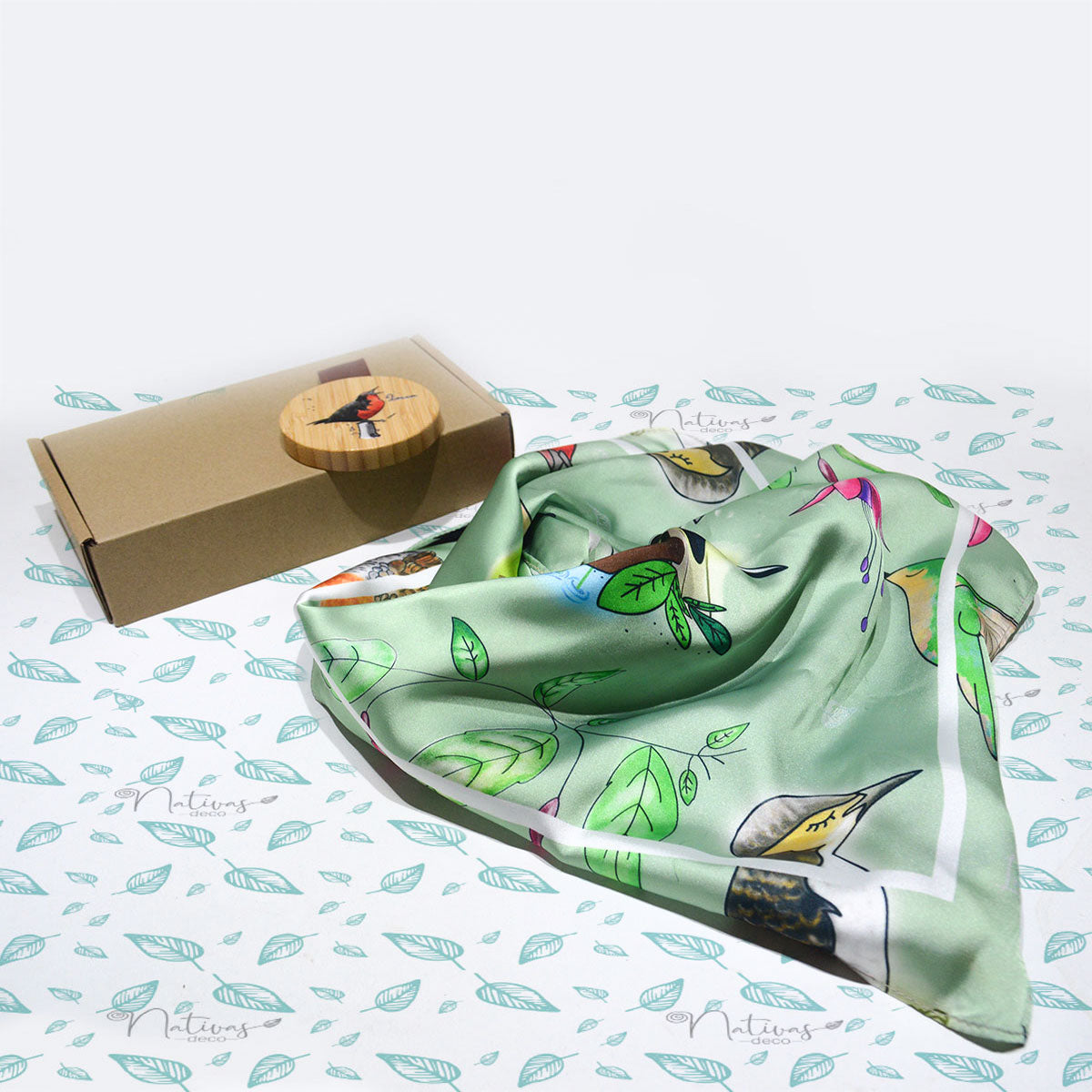 Porque la belleza de la Flora nativa de Chile nos cautiva y enamora, la llevamos a estos hermosos Pañuelos satinados, elaborados con una exquisita Tela, de caida estilo seda, compuesta de 50% de material reciclado, ideal para lucir estupenda con muuucho sentido y estilo!!!