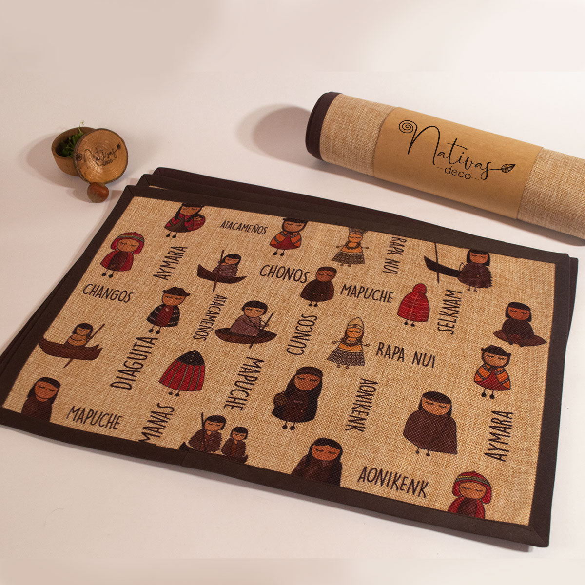Nuestra propuesta incluye set de 4 unidades con ilustraciones de Pueblos originarios.