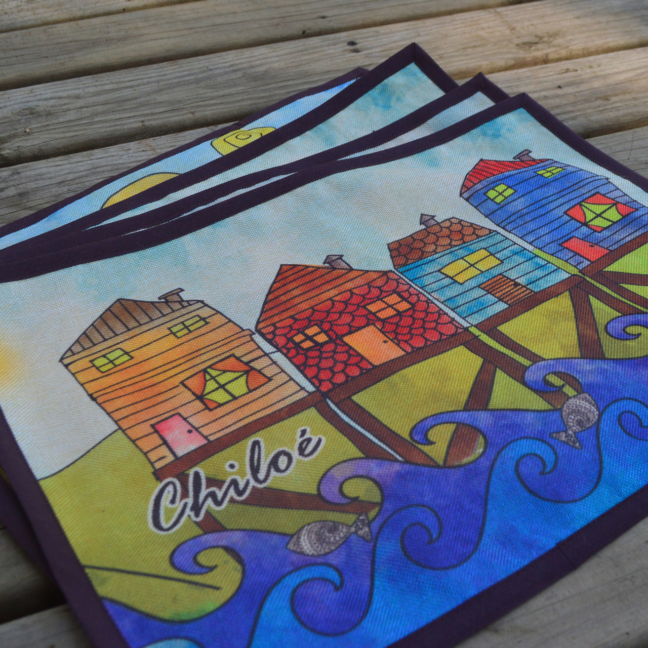 Nuestra propuesta incluye set de 4 unidades con ilustraciones dedicadas a la magia de Chiloé.