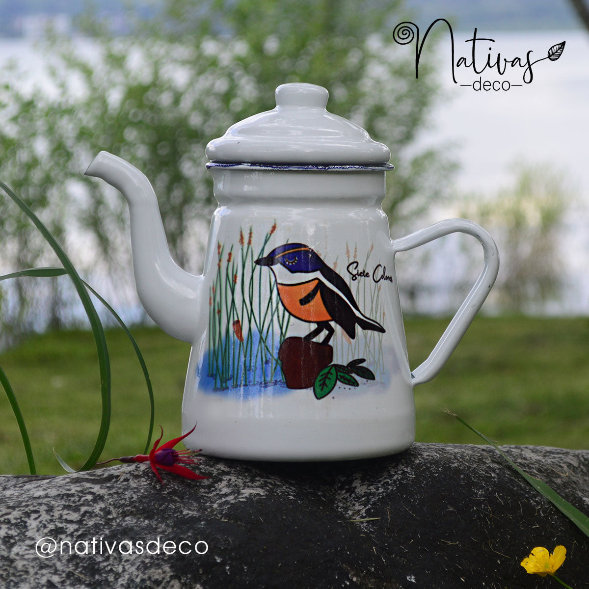 Teteras enlozadas, tienen capacidad para 1.5 ltrs y diseños originales inspirados en la Fauna que habita en nuestro País. Visibilizando la Fauna, como el bello Fiu o siete colores, el Chucao y el zorro, en objetos útiles y lindos ❤️